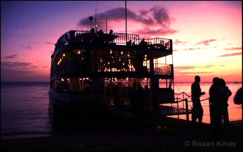 The Harbour Master at sunset on the famed Sandy Lane beach. This is a cruise not to be missed. With a deck for dining and dancing and a top deck for sunning or a quiet retreat, as well as a main deck with a massive bar, television and impressive aquarium, this vessel also has another lower deck with shops and air conditioned bar as well as a semi submersible for viewing just what goes on underneath the boat. Great outing.